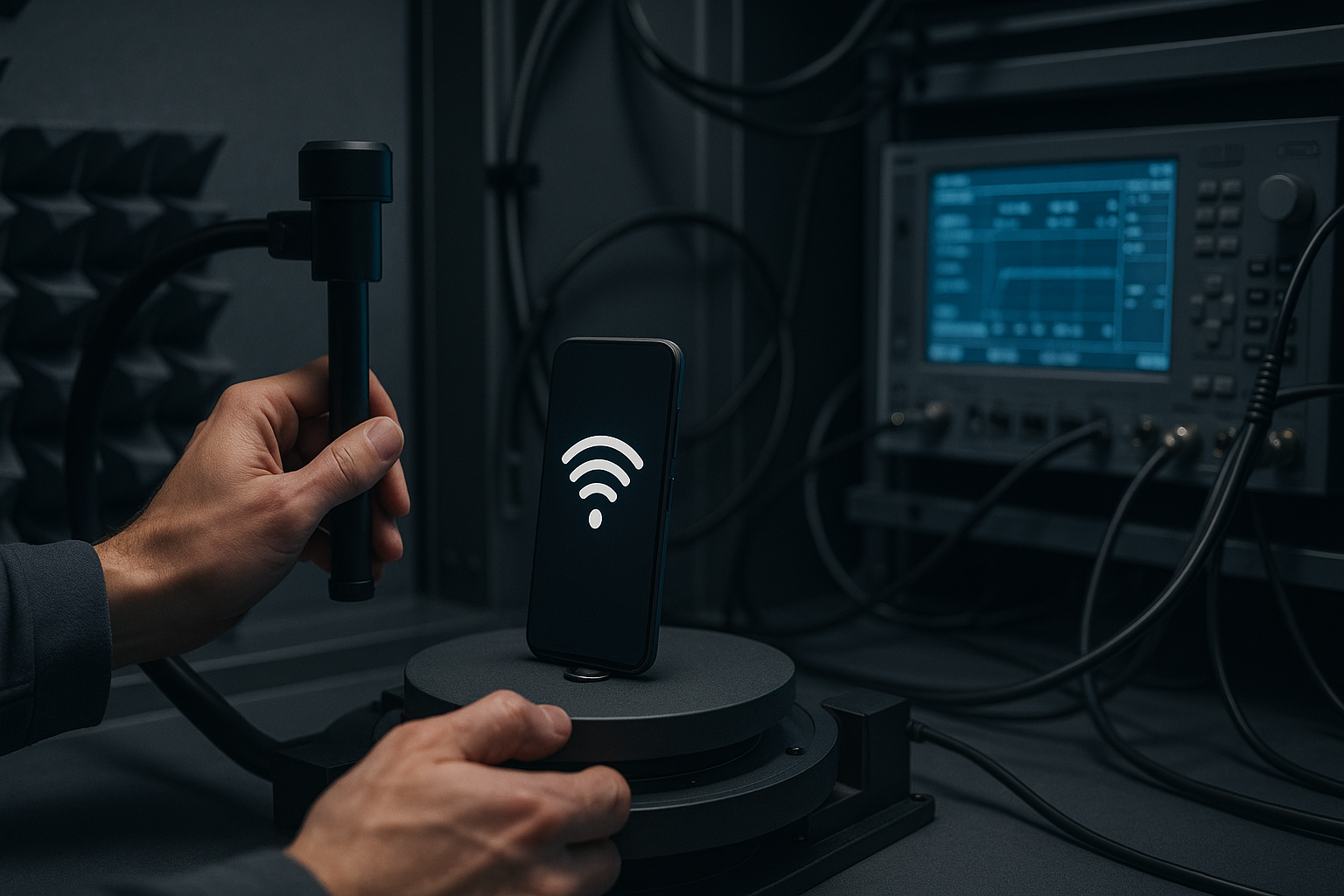 - Fixtures and repeatable mechanics: bespoke DUT mounts for small form factor devices, wearables, and antenna modules—built to reduce placement variance.